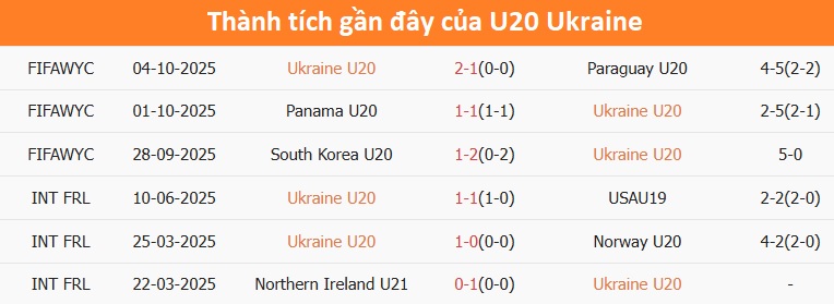 Tỷ lệ trận đấu: U20 Ukraine thắng 7/8 trận gần đây theo tỷ số châu Á, gồm 2/3 trận tại giải năm nay. Về phần mình, U20 Tây Ban Nha thua 2/3 trận vừa qua.