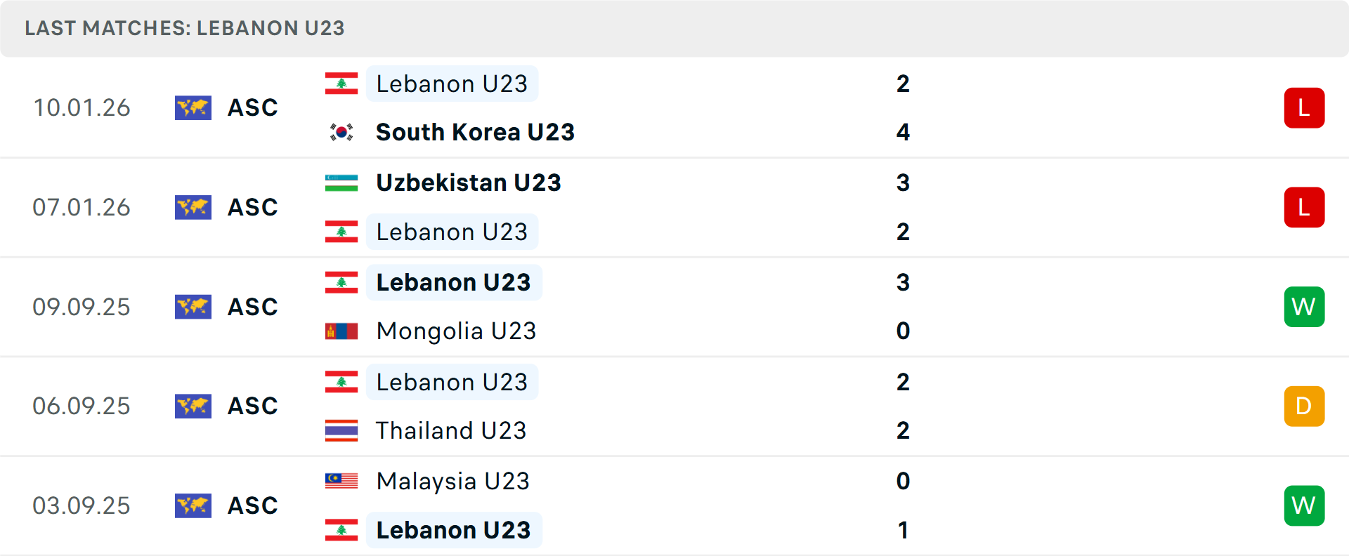 Tổng bàn thắng cả trận: Cả 3 trận gần đây của U23 Lebanon đều vượt mốc tổng bàn thắng, lọt lưới 7 bàn qua 2 trận tại giải.