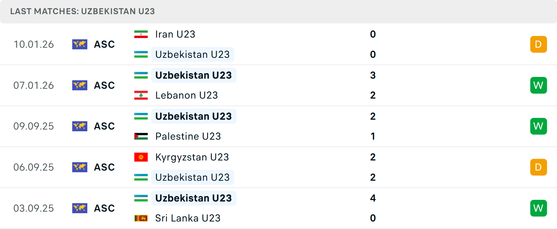 Tỷ lệ trận đấu: U23 Uzbekistan thua 4/5 trận gần đây theo tỷ số châu Á (hoà 1). Phía bên kia, U23 Hàn Quốc thắng trận mới nhất.