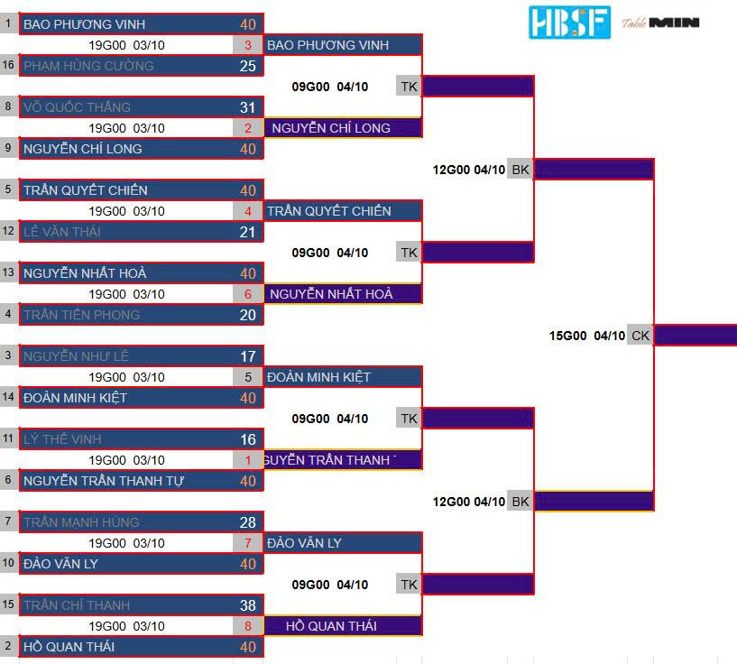 Lịch đấu carom 3 băng ngày 3/10.