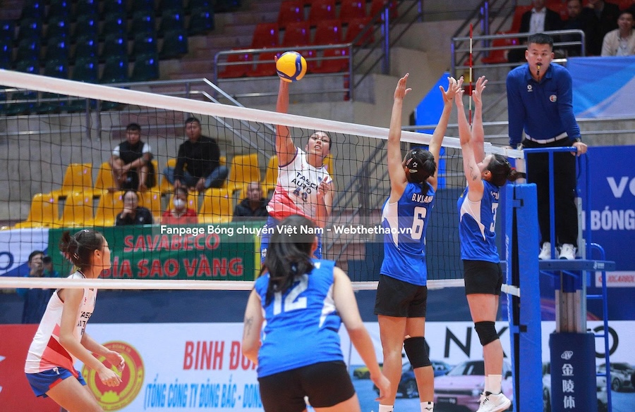Ánh Thảo và Thuỳ Linh thay nhau tỏa sáng trên hai biên, trong khi Yến Nhi điều phối lối chơi nhịp nhàng, tạo cơ hội cho các mũi tấn công liên tục gây sức ép. Sự đồng đều và gắn kết của Hà Nội Tasco Auto khiến đối thủ không thể tìm ra phương án hóa giải.