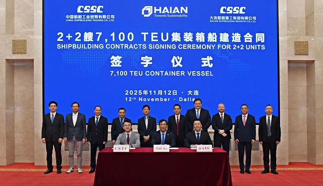 Lễ ký hợp đồng đóng tàu giữa Hải An Green với đối tác Trung Quốc trong tháng 11/2025 - Ảnh: HAH