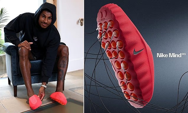Marcus Rashford với mẫu giày sục Nike Mind 001 được cho là giúp "cải thiện tâm lý cùng sự tập trung" tốt hơn