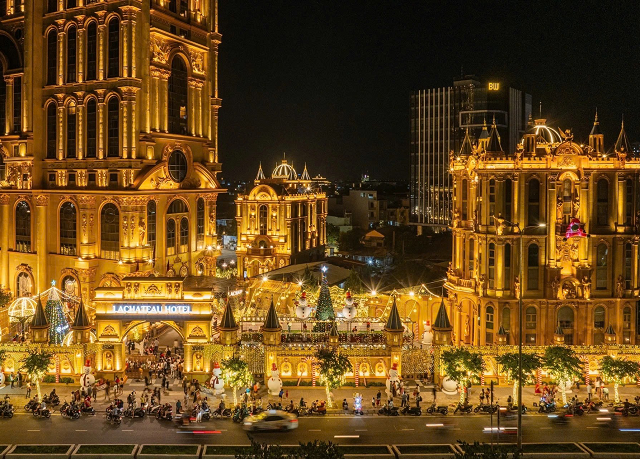 Mùa Noel năm nay, thị trường xôn xao về một khách sạn dát vàng tọa lạc ngày trên đại lộ lớn nhất nhì TPHCM chi hàng tỷ đồng cho trang trí Giáng sinh. Điểm gây chú ý bởi sự lộng lẫy bên ngoài với nền sơn mạ vàng sáng lóa, cùng những ngọn đèn đầy màu sắc lung linh và các hình tượng, cảnh vật Noel hoành tráng.