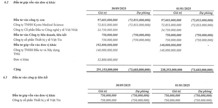 Tổng giá trị góp vốn vào công ty con và công ty liên kết của JVC hơn 291 tỷ đồng. Trong đó, JVC đang dự phòng gần 73 tỷ đồng với khoản đầu tư vào Kyoto Medical Science.