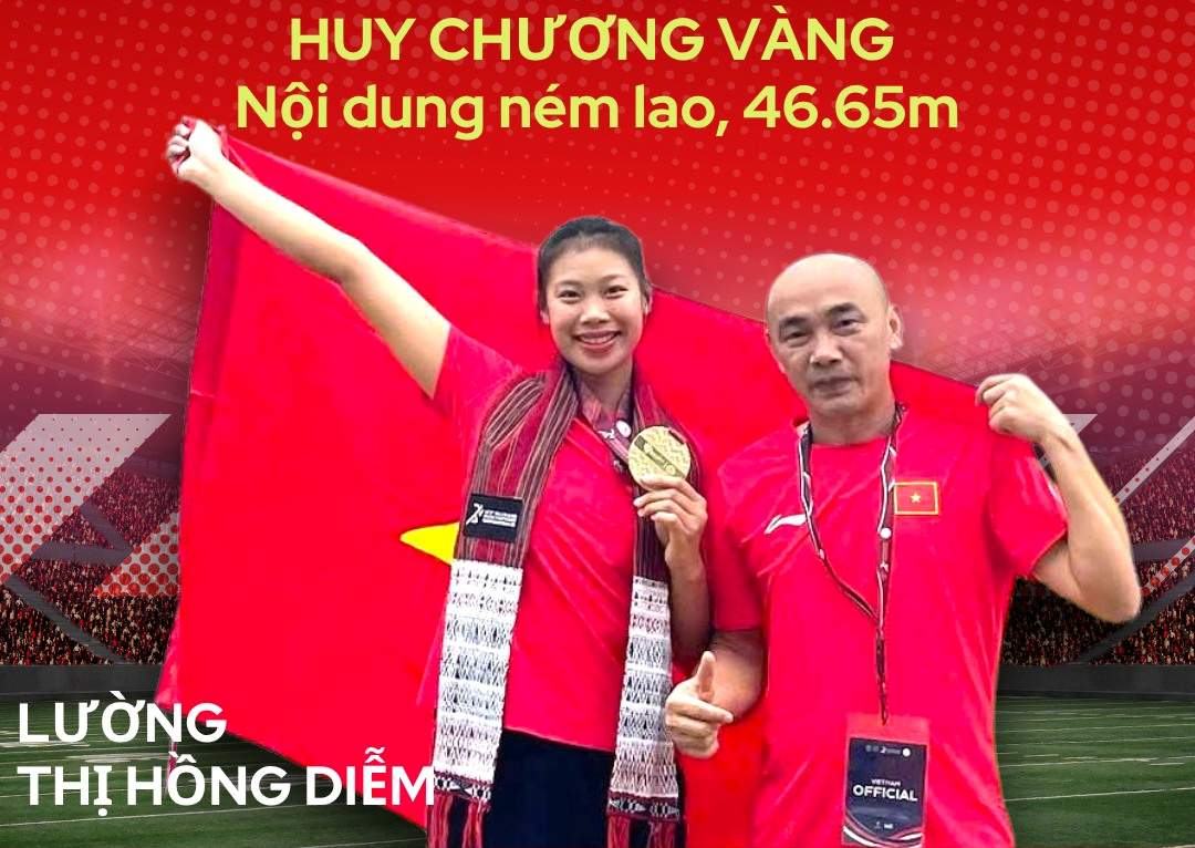 Kế đến, Hồng Diễm cũng mang về tấm HCV ném lao nữ với thành tích 46.65m ở lứa tuổi U18.