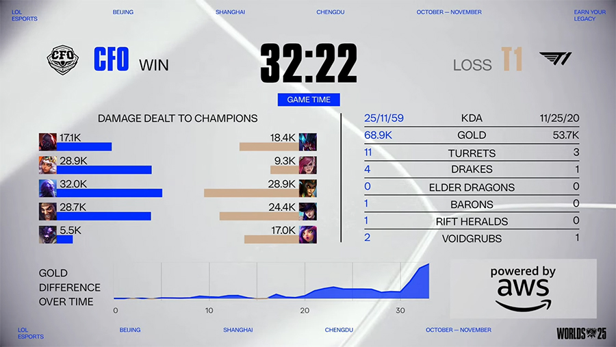 Chiến thắng ngày hôm nay của CFO trước T1 thực sự là một cơn địa chấn trong ngày thi đấu thứ 2 của vòng Swiss CKTG 2025. "Anh cả" của khu vực LCP đã có màn thể hiện đầy thuyết phục trước một trong những ứng cử viên vô địch của giải đấu để vươn lên nhóm 2-0. Họ chỉ còn cách vòng tứ kết của giải đấu đúng một chiến thắng Bo3.