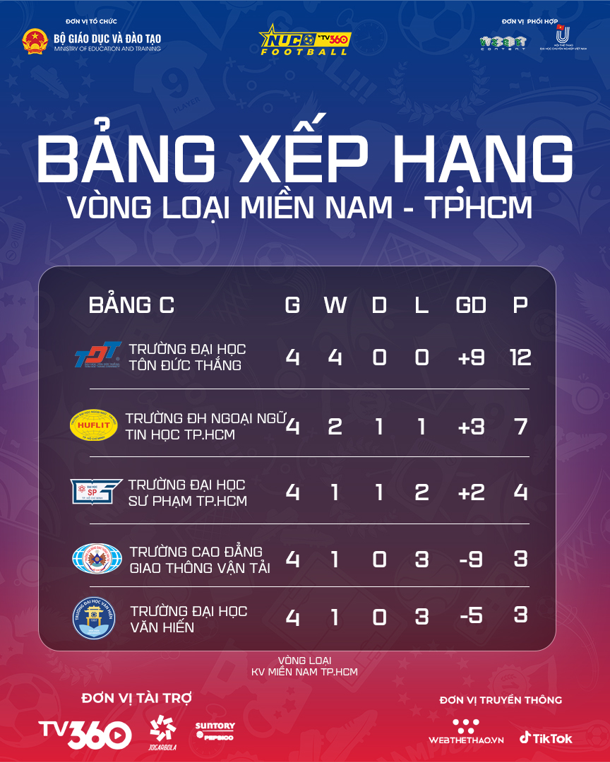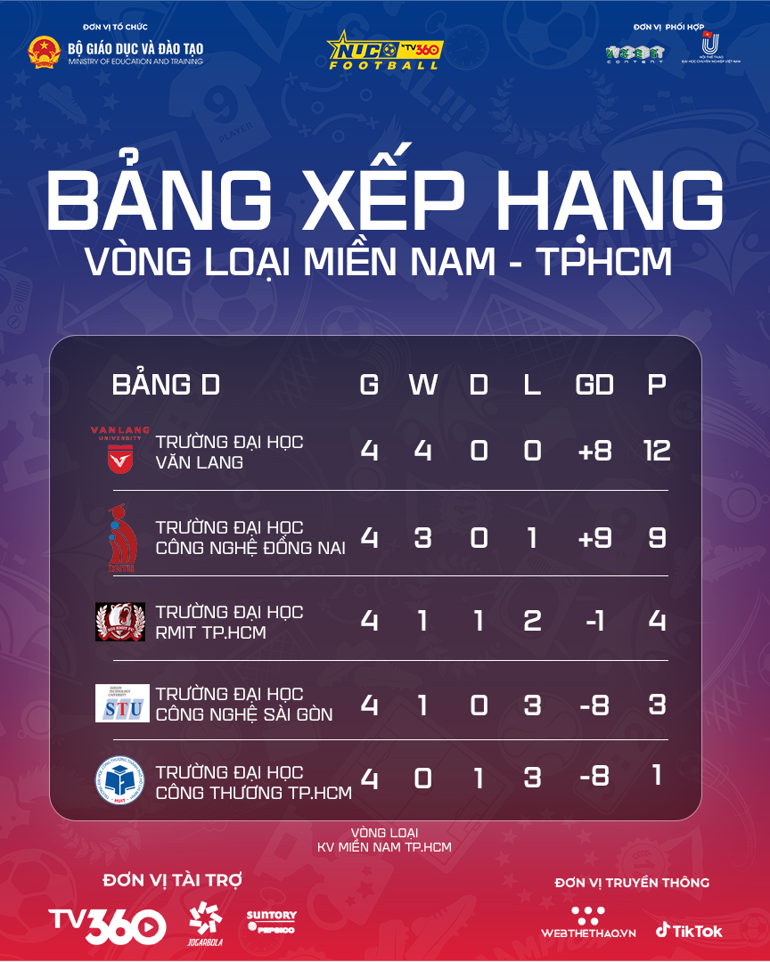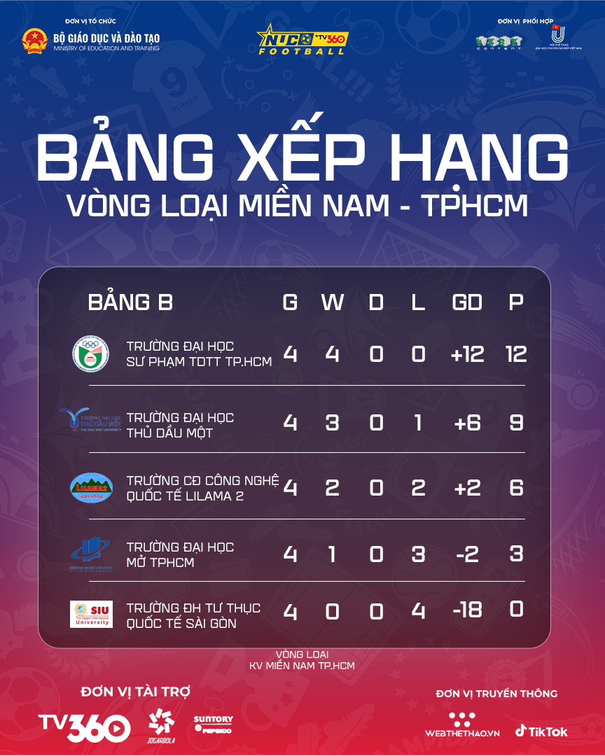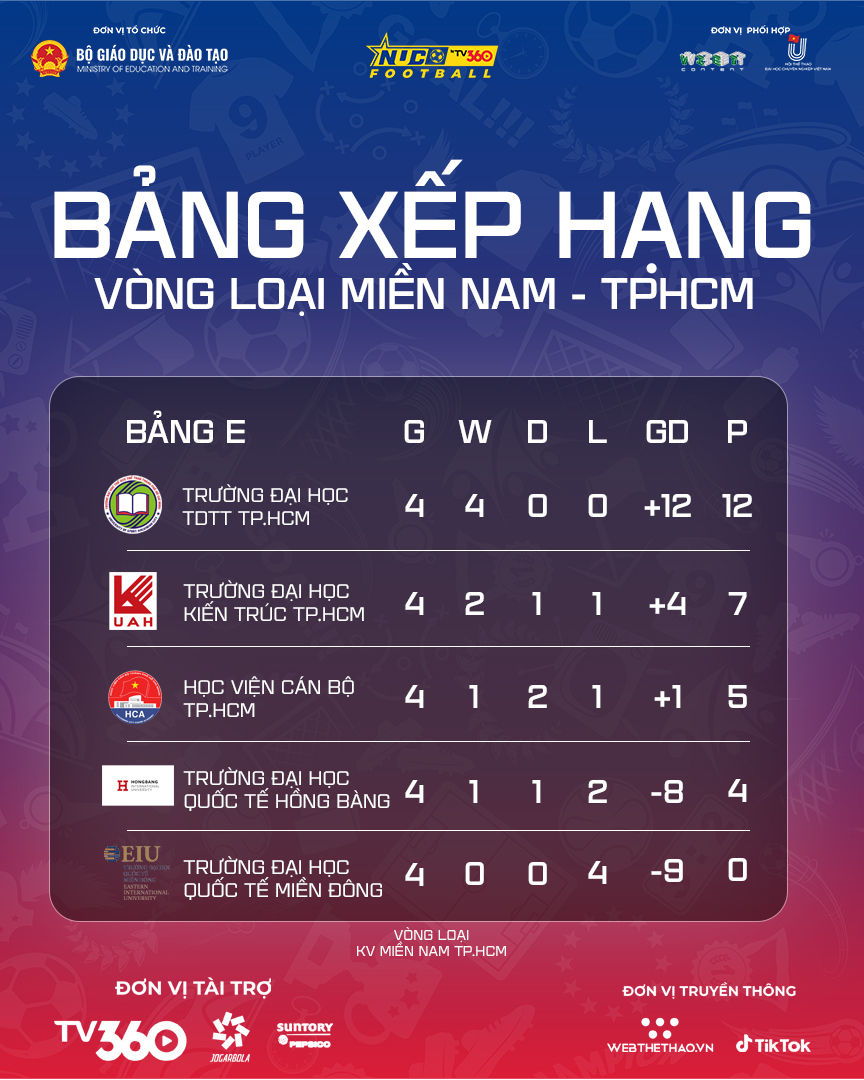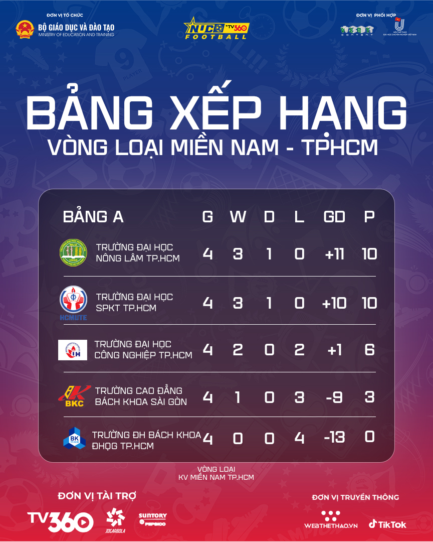 BXH chung cuộc vòng loại Tp.HCM NUC 2025
