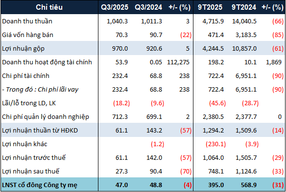 Mặt khác, lãi sau thuế 9 tháng chỉ tương đương hơn 7% mục tiêu 10.1 tỷ đồng đề ra cho cả năm 2025.