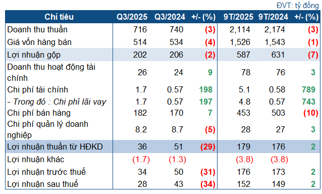Các chỉ tiêu kinh doanh của MCM trong quý 3/2025