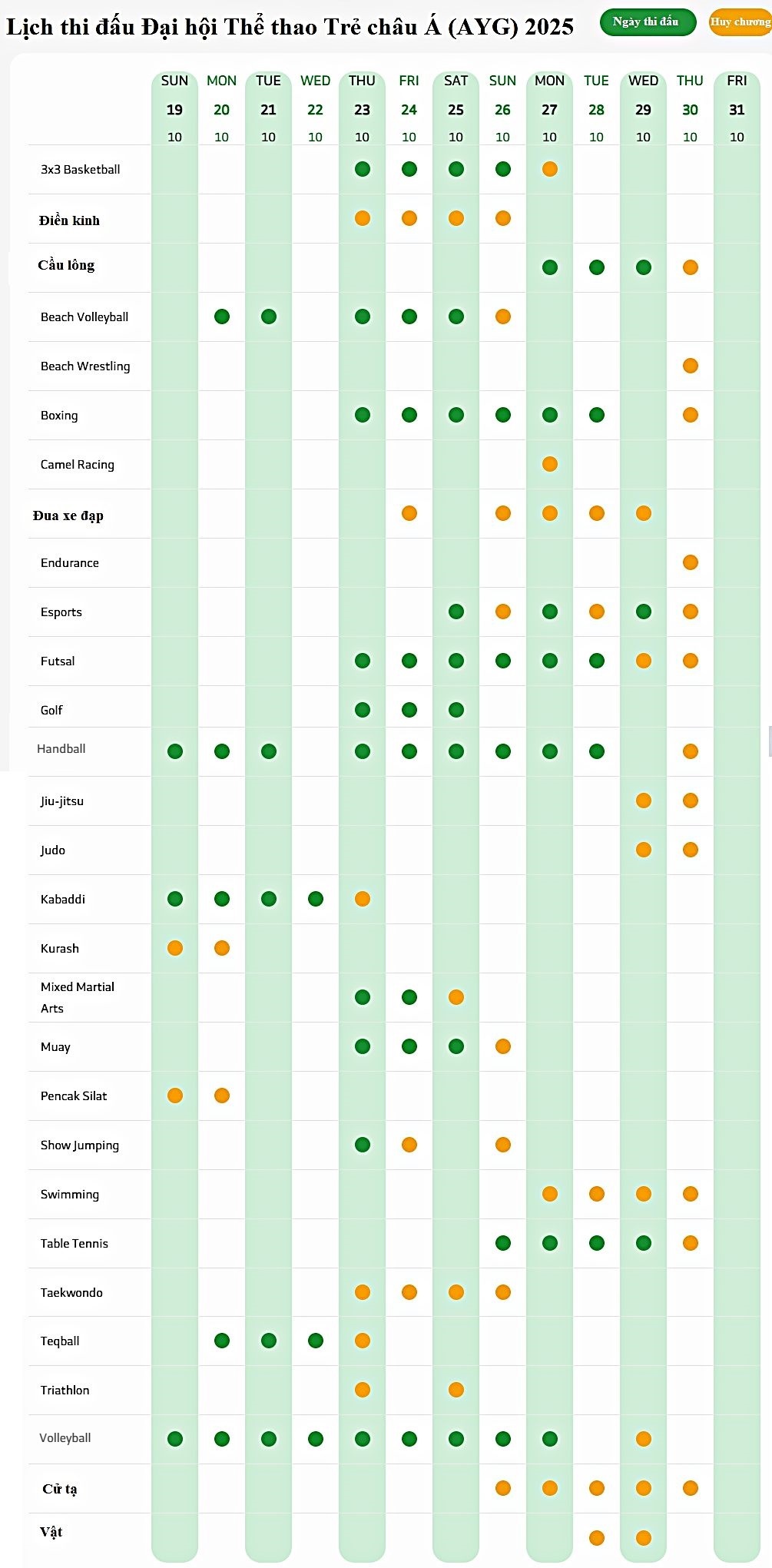 Lịch thi đấu Đại hội Thể thao Trẻ châu Á (AYG) 2025