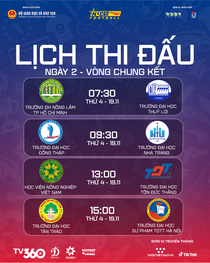 Lịch thi đấu giải bóng đá sinh viên toàn quốc NUC 2025 ngày 2