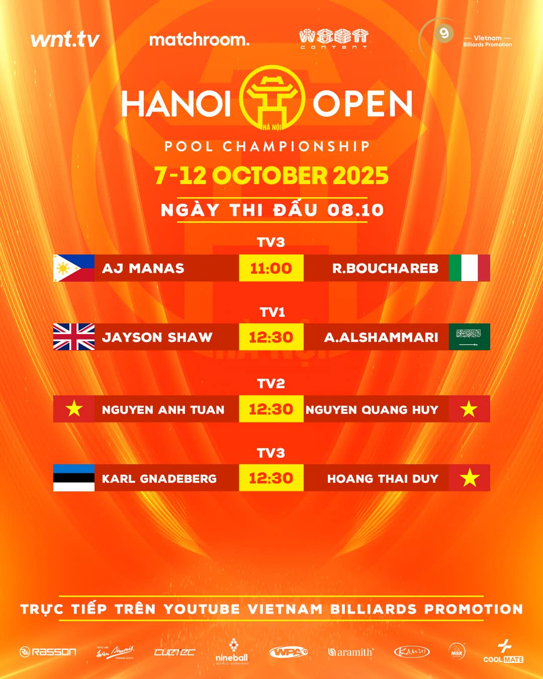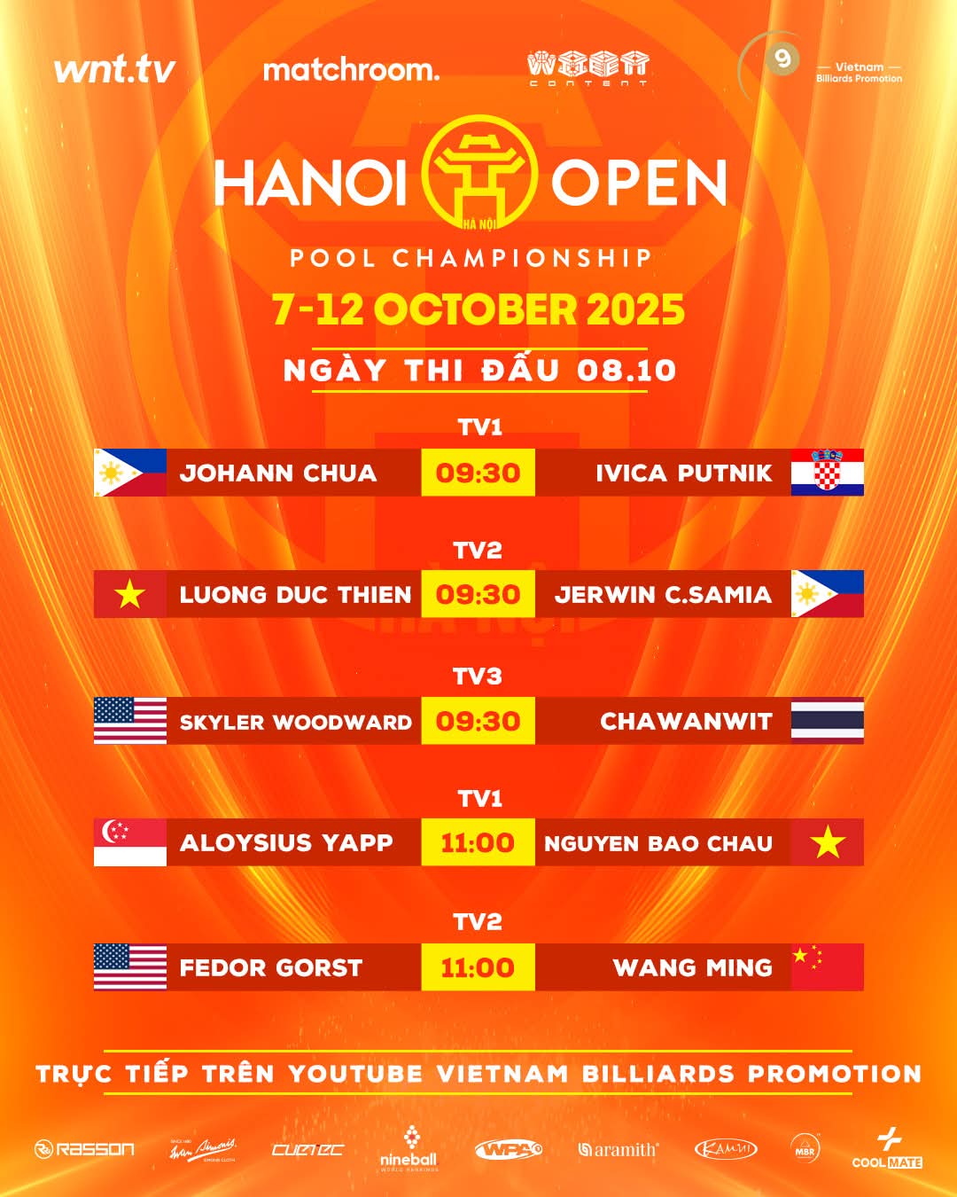 Danh sách kênh và đối tác phát sóng trực tiếp Hanoi Open Pool 2025
