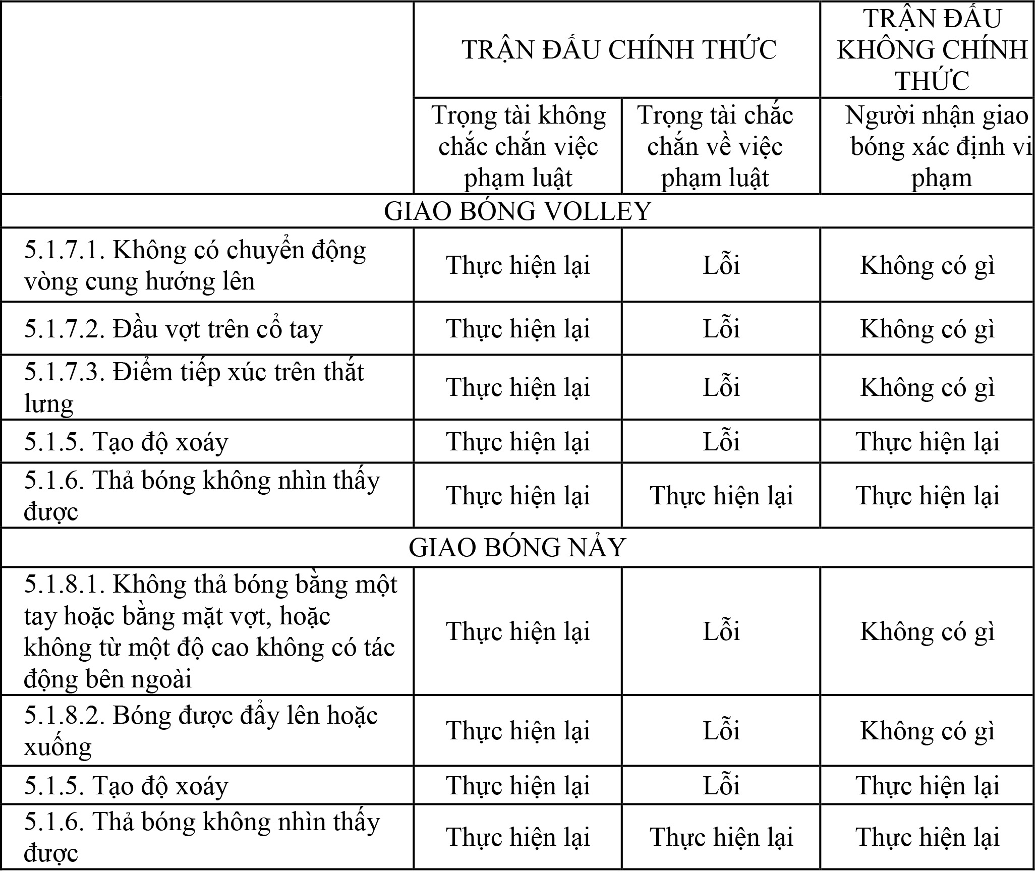 4.A.9.a. Các biện pháp xử lý vi phạm động tác giao bóng được quy định như sau: