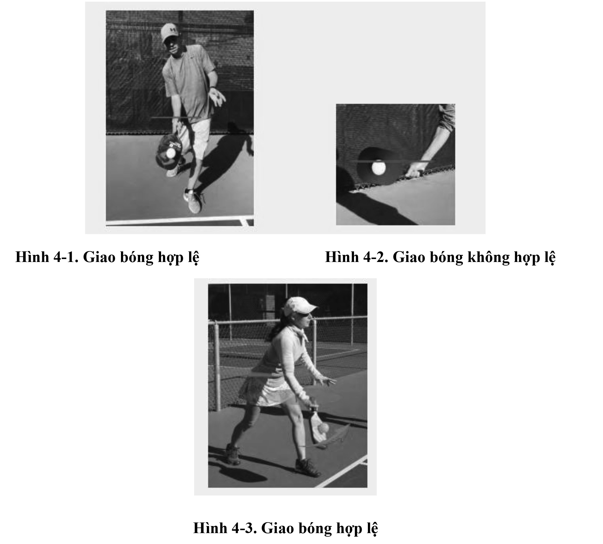 4.A.7.a. Cánh tay của người giao bóng phải chuyển động theo hình vòng cung hướng lên tại thời điểm vợt chạm bóng. (Xem Hình 4-3)