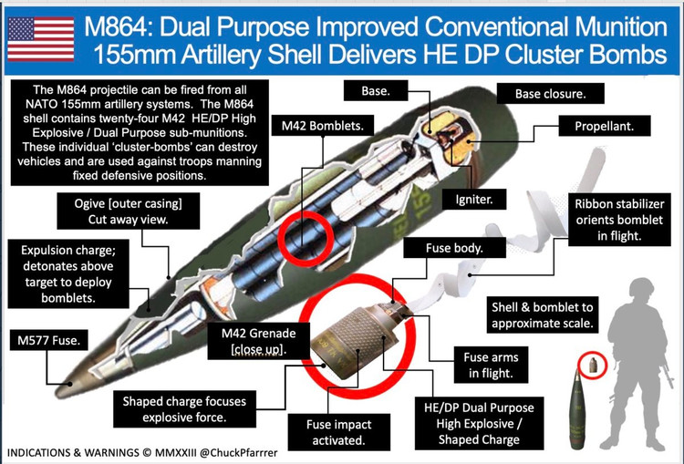 Đạn dược Thông thường Cải tiến Đa năng (DPICM) chứa nhiều loại đạn con chống tăng và chống bộ binh cỡ lựu đạn, từ 72 quả bom bi trong đạn pháo lựu M864 155mm, đến 644 quả đạn con trong tên lửa M26 được phóng từ Hệ thống Pháo phản lực Phóng loạt M270.