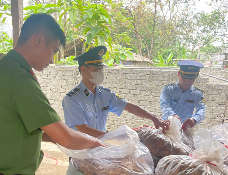 Lực lượng chức năng thu giữ hàng hoá vi phạm/Ảnh DMS