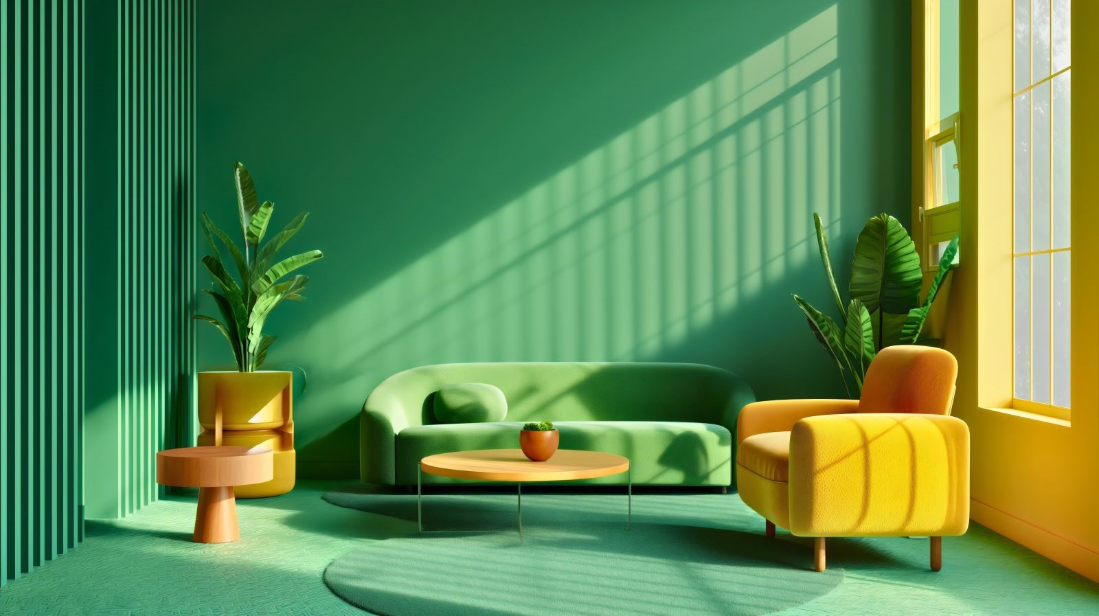 Màu xanh lá cây mang cảm giác an toàn, an nhiên. Màu này được coi là màu giúp giảm các căng thẳng về thần kinh. Theo các đánh giá, màu này là màu trung tính. Bởi vậy, trong thiết kế nội thất, màu xanh lá cây phù hợp với tất cả các phòng.