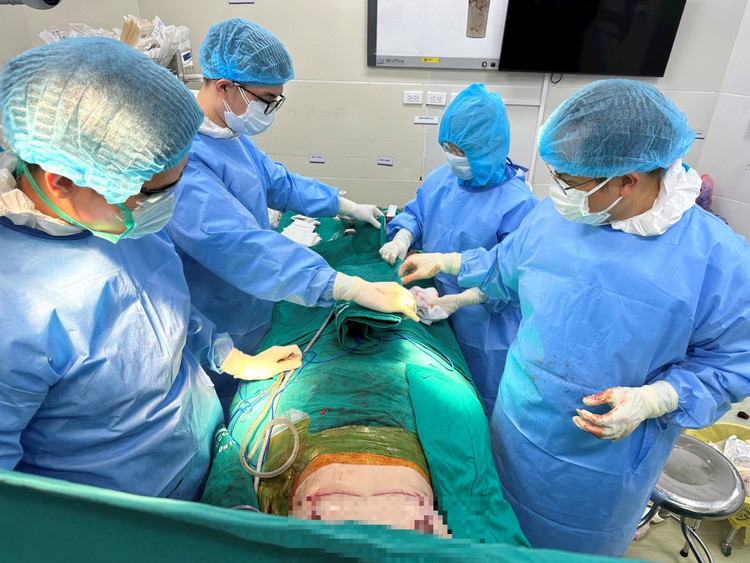 Ca phẫu thuật diễn ra hơn 7 giờ đồng hồ. Kíp phẫu thuật từ Bệnh viện Đại học Y Hà Nội gồm nhiều y bác sĩ đã phối hợp nhịp nhàng, ăn ý các kỹ thuật khó để lấy các hạt silicon ra khỏi vùng ngực bệnh nhân, sau đó tiến hành tạo hình vùng ngực.