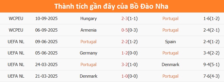 Phong độ Bồ Đào Nha 6 trận gần nhất