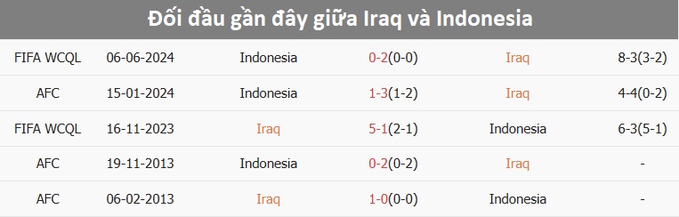 Phong độ và lịch sử đối đầu Iraq vs Indonesia