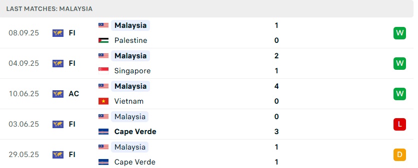 Ngược lại, Malaysia đang trải qua giai đoạn đầy biến động dù khởi đầu ấn tượng. “Những chú Hổ Harimau” toàn thắng hai trận đầu bảng F, lần lượt vượt qua Nepal 2-0 và hạ Việt Nam tới 4-0, thể hiện sức mạnh đáng gờm. Họ cũng từng duy trì phong độ cao trong loạt giao hữu khi đánh bại Singapore và Palestine, mang đến sự kỳ vọng lớn cho người hâm mộ.