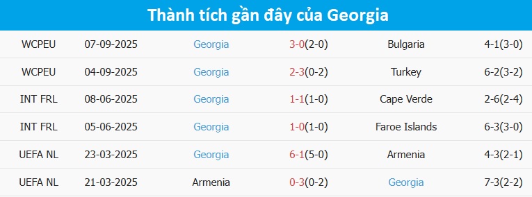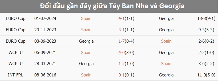 Lịch sử đối đầu Tây Ban Nha vs Georgia