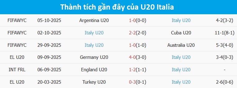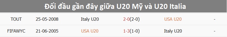 Lịch sử đối đầu U20 Mỹ 1-1 U20 Italia