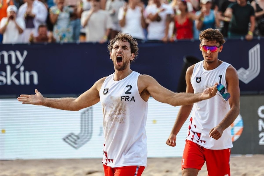 Ở Bảng G giải bóng chuyền bãi biển vô địch thế giới, Jacob Hölting Nilsson và Elmer Andersson của Thụy Điển cùng Téo Rotar và Arnaud Gauthier-Rat của Pháp đã xuất sắc giành chiến thắng thứ hai liên tiếp, qua đó chính thức có vé đi tiếp.