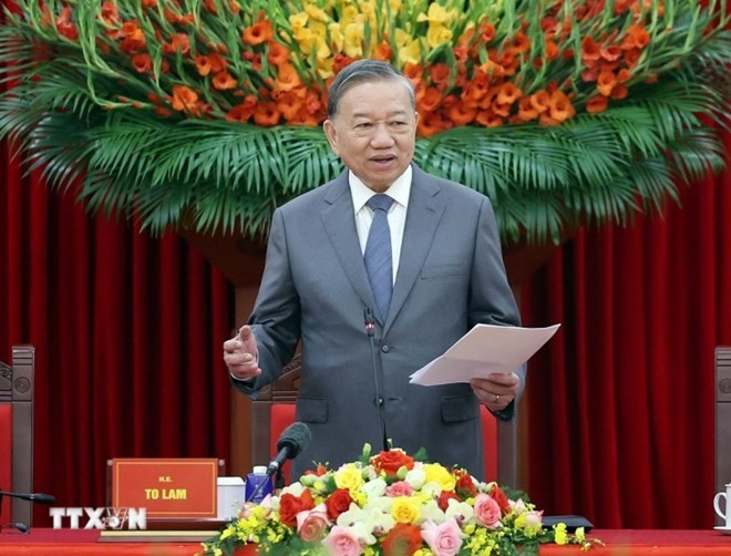 Tổng Bí thư Tô Lâm phát biểu tại Hội thảo quốc tế Việt Nam học lần thứ 7. (Ảnh: Thống Nhất/TTXVN)