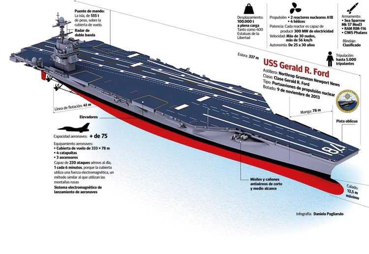 Mỹ vẫn áp đảo với động cơ hạt nhân và đội tàu sân bay hùng hậu.