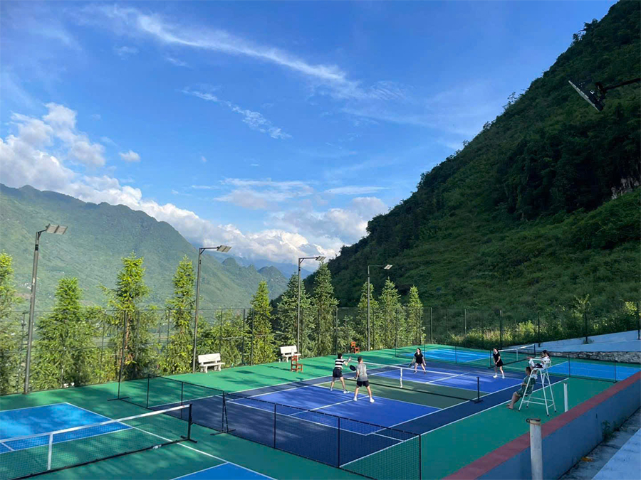 Tại khu nghỉ dưỡng ở Hà Giang, du khách lưu trú được sử dụng sân pickleball hoàn toàn miễn phí, với đầy đủ vợt, bóng và dịch vụ xe điện đưa đón. Sau khi vận động, họ có thể thư giãn bên hồ bơi vô cực nhìn ra núi rừng, thưởng thức ẩm thực vùng cao trong không gian ấm cúng hoặc nhâm nhi đồ uống tại sky bar với tầm nhìn ôm trọn thung lũng mờ sương.