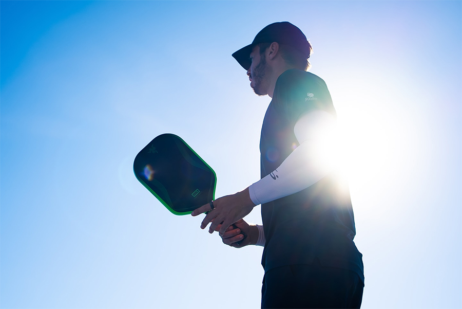 “Mẫu vợt này là sản phẩm hợp tác giữa JOOLA và Razer,” Johns nói thêm. “Logo Razer nằm ở đầu mặt vợt, logo JOOLA ở phía dưới. Vẫn là dòng Pro IV quen thuộc, nhưng với thiết kế xanh-đen cực ngầu. Tôi rất thích, đặc biệt khi phối cùng trang phục đen toàn tập – trông như Luke Skywalker vậy. Thật tuyệt khi thấy một công ty game lớn như Razer hứng thú với pickleball.”