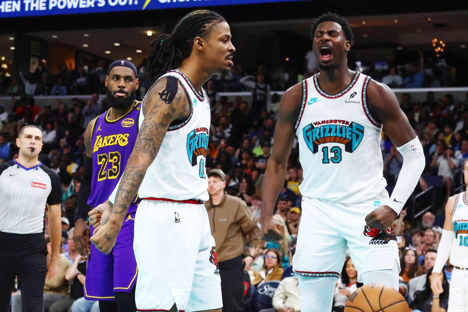 Jaren Jackson Jr. (bìa phải) trong một lần đối đầu Los Angeles Lakers