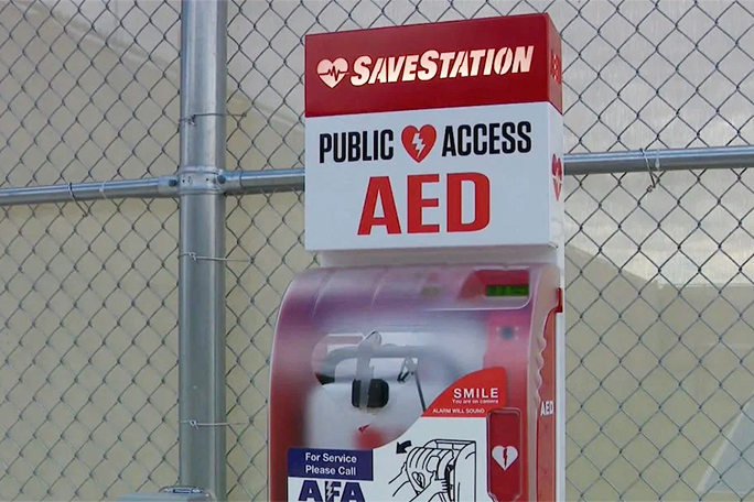 - Yêu cầu lắp đặt AED nếu sân chưa có. Các trung tâm thể thao, phòng gym và công viên đều cần trang bị thiết bị này.