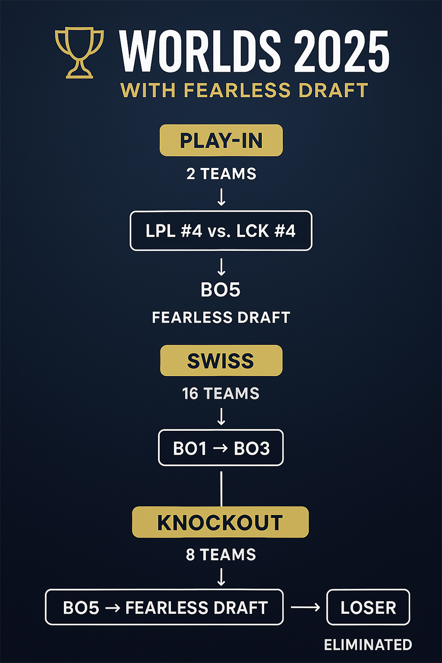 CKTG 2025 sẽ áp dụng thể thức Fearless Draft, tăng tính sáng tạo, buộc đội tuyển phải đa dạng chiến thuật, tạo ra một meta đa dạng và phong hơn cho giải đấu.