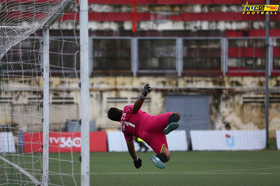 Thủ thành Nguyễn Mạnh Tùng đã có một ngày thi đấu đầy nỗ lực, nhưng anh vẫn không thể giúp Trường ĐH Nông Lâm tránh khỏi một thất bại trước Trường ĐH Thuỷ Lợi.