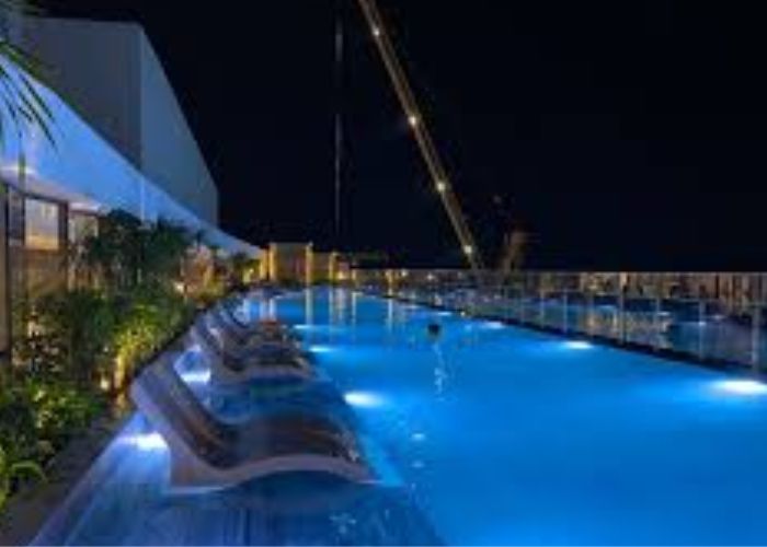Hồ bơi vô cực (Infinity Pool) nằm trên tầng thượng (tầng 36), đây là hồ bơi cao nhất Vũng Tàu. Từ đây, bạn có thể phóng tầm mắt bao trọn đường bờ biển Bãi Sau tuyệt đẹp. Đây là góc "check-in" đắt giá nhất mà bất cứ ai đến The Sóng cũng phải ghé qua. Phòng Gym và yoga view biển, vừa tập luyện vừa ngắm biển từ trên cao là trải nghiệm rất thư giãn. Cầu kính và đài ngắm cảnh giúp bạn có những bức ảnh "sống ảo" độc đáo giữa không trung.