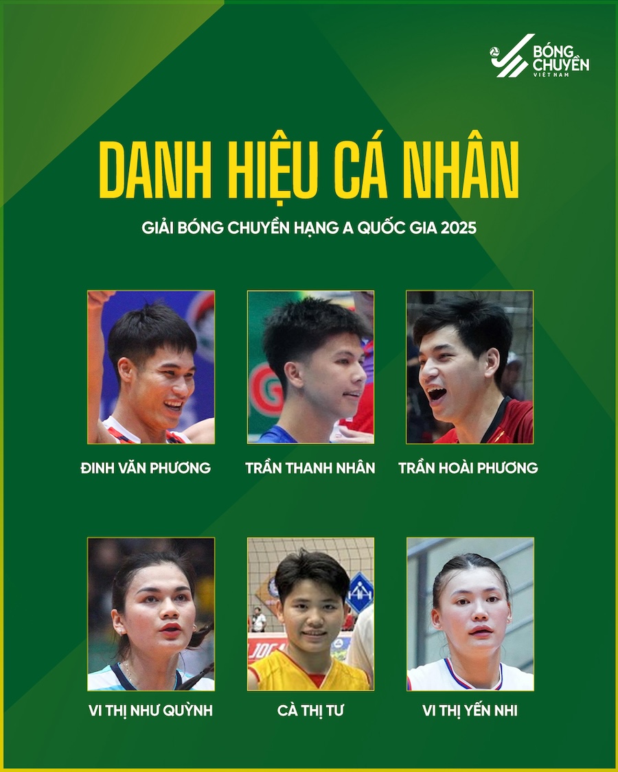 Giải bóng chuyền hạng A quốc gia 2025 đã khép lại với những màn trình diễn ấn tượng và nhiều dấu ấn chuyên môn giá trị. Bên cạnh hai nhà vô địch đầy thuyết phục, những cá nhân xuất sắc nhất của giải đấu cũng được vinh danh sau 10 ngày tranh tài căng thẳng.