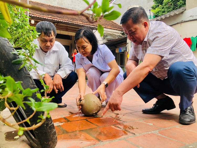 Lãnh đạo CDC Hà Nội thực hiện giám sát công tác điều tra, xử lý tại các khu vực nguy cơ, ổ dịch sốt xuất huyết. Ảnh: Duy Tuân/HNM