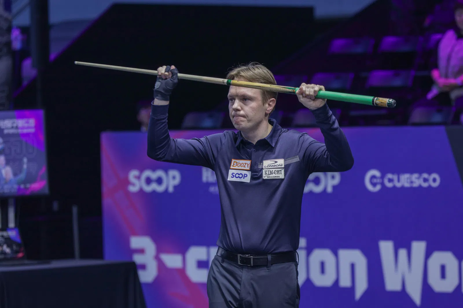 Glenn Hofman đã đánh bại tay cơ trẻ người Hàn Quốc, cựu vô địch thế giới, ở tứ kết World Cup tại Bỉ và đang thể hiện sức mạnh vượt trội hơn bao giờ hết trong những vòng đấu cuối cùng của các giải đấu lớn. Marco Zanetti, lão tướng 63 tuổi, đang cạnh tranh cho vị trí trên bục vinh quang sau trận đấu tuyệt vời với Tayfun Tasdemir (50-49), trận đấu hấp dẫn nhất trong hôm thứ Bảy.