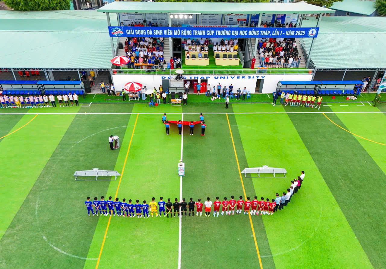 Trường Đại học Đồng Tháp đang khẳng định vị thế tiên phong trong khối trường học, khi mạnh tay đầu tư nâng cấp toàn diện sân bóng đá, mang đến một bộ mặt mới vô cùng sống động và chuyên nghiệp. Việc nâng cấp diễn ra chỉ 3 tháng sau khi trường tổ chức thành công giải bóng đá sinh viên mở rộng năm 2025. Ban Giám hiệu đã quyết định "thừa thắng xông lên" với tham vọng lớn hơn: không chỉ phục vụ sinh viên, mà còn sẵn sàng đăng cai các sự kiện lớn như Giải Bóng đá nam sinh viên toàn quốc năm 2025 - Cúp TV360.