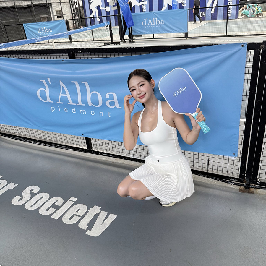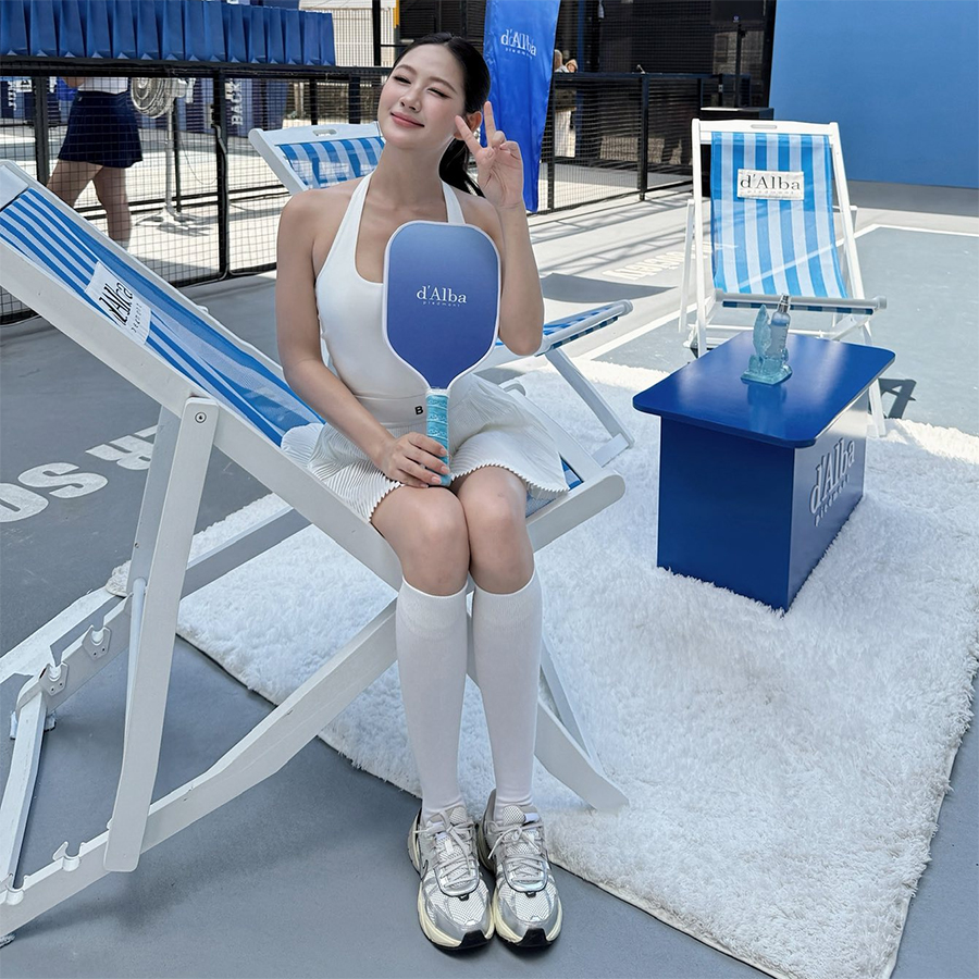 Khác với hình ảnh điệu đà, nữ tính thường thấy trong các bộ lookbook, Túc Anh Hoa mang đến một diện mạo khác biệt đầy sức sống khi cầm vợt pickleball. Mái tóc được buộc gọn gàng, trang phục thể thao vừa vặn kết hợp cùng nụ cười tươi tắn giúp cô toát lên vẻ đẹp khỏe khoắn và tinh thần lạc quan.
