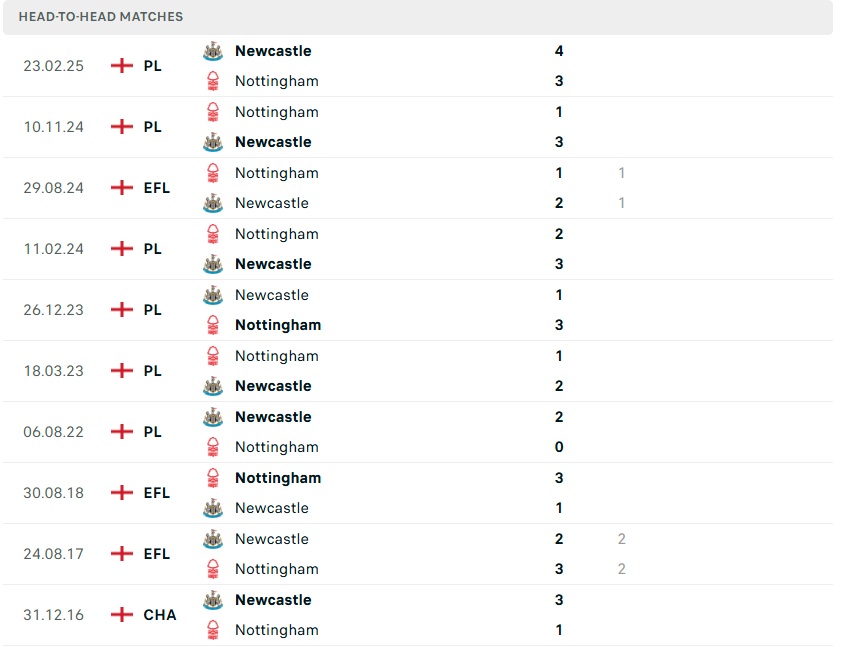 Thống kê đối đầu cũng đang nghiêng hoàn toàn về phía “Chích chòe”, khi Newcastle thắng 3 trận gần nhất gặp Nottingham tại Ngoại hạng Anh và thắng tới 8/9 lần tiếp đón đối thủ này trên sân nhà. Với phong độ trái ngược và lợi thế rõ ràng, Newcastle được dự đoán sẽ dễ dàng giành trọn 3 điểm.