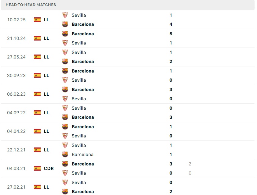 Dù Sevilla có lợi thế sân nhà và tinh thần đang lên, sự vượt trội về chất lượng đội hình cùng thành tích đối đầu ấn tượng giúp Barcelona được đánh giá cao hơn. Một chiến thắng sát nút cho đội đầu bảng là kịch bản được nhiều người dự đoán.