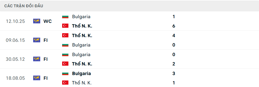 Lịch sử đối đầu Thổ Nhĩ Kỳ vs Bulgaria
