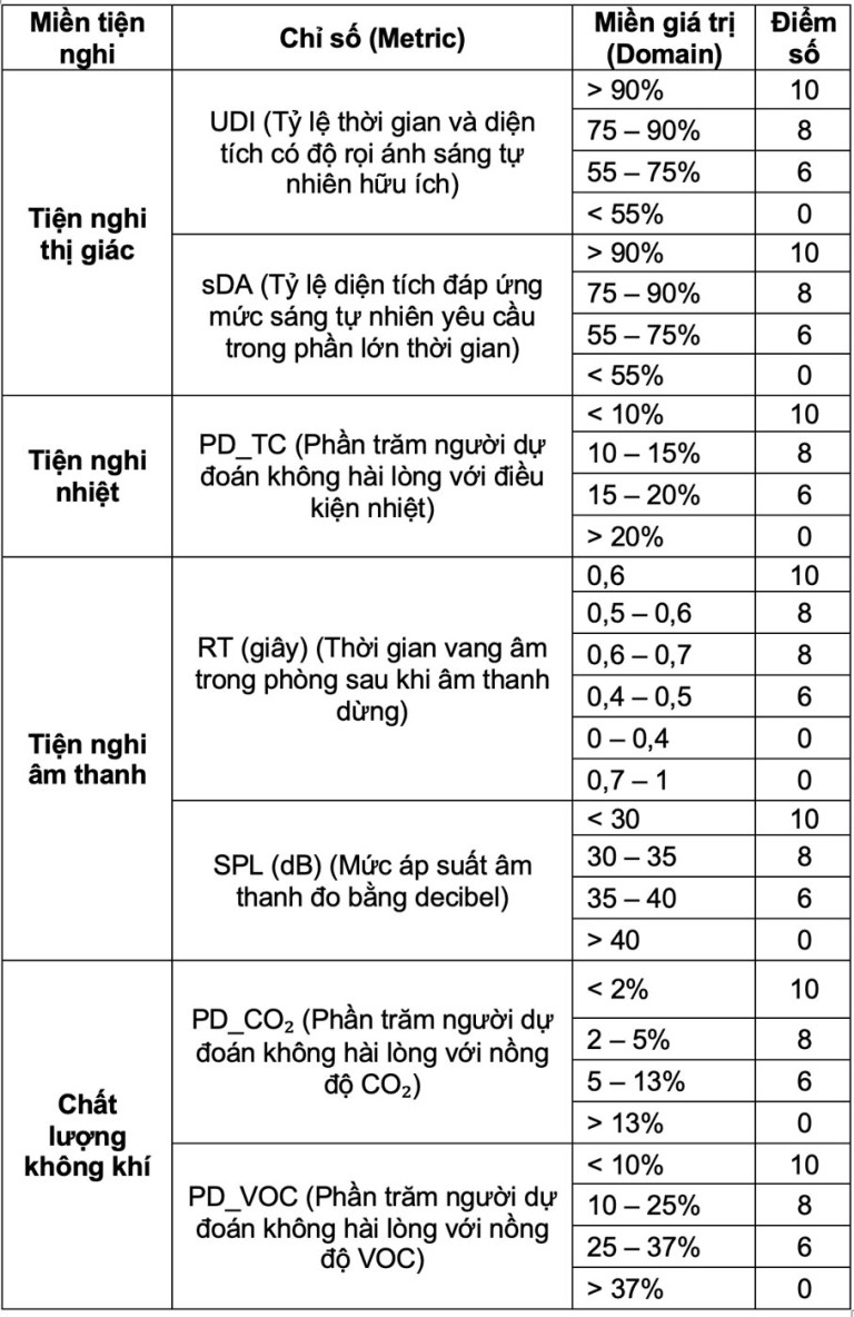 a. Mô phỏng định lượng các tiêu chuẩn IEQ