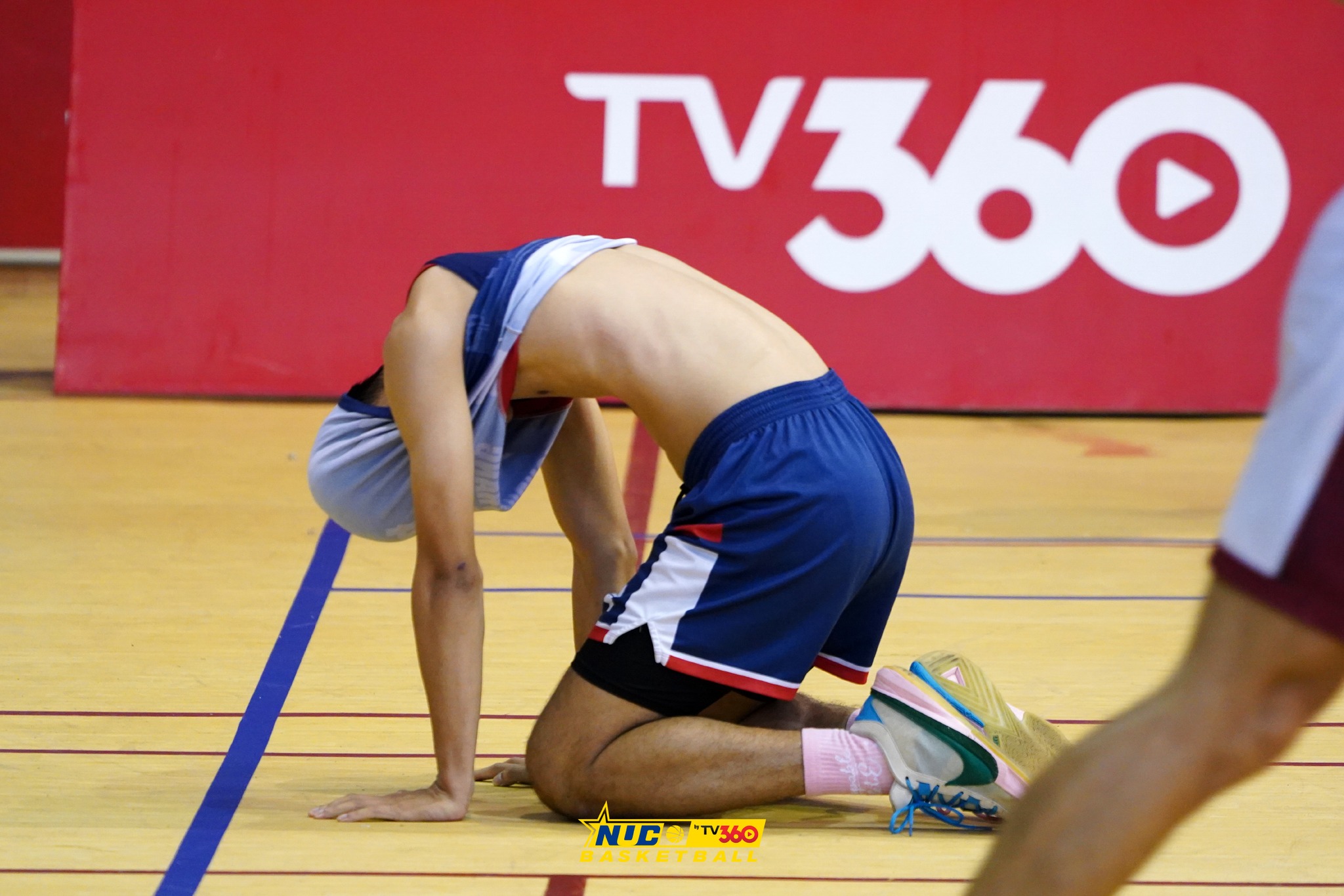 Khoảnh khắc Duy Phát đổ gục sau trận đấu khi Đại học Tôn Đức Thắng thua sít sao 66-64 trước Trường ĐH Kinh Tế - ĐHQG Hà Nội
